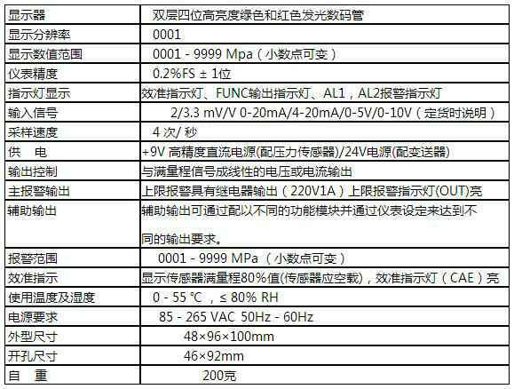 额定量程:四位显示