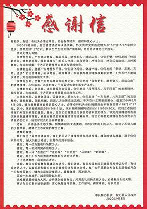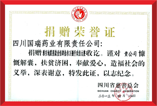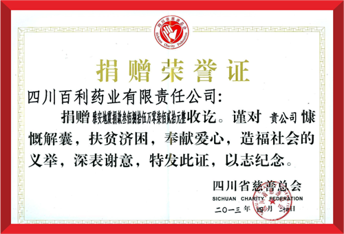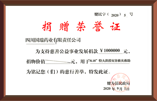 2020年8月18日,四川省犍为县遭遇百年未遇特大洪涝灾害,kaiyun体育app官网登录入口(中国)官方网站-登录入口集团国瑞药业向犍为县灾区捐赠现金100万元。